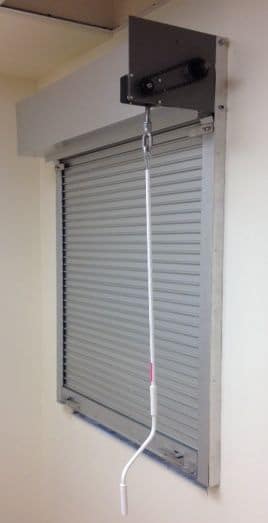 Motors completely contained within the barrel can be provided for counter doors in limited usage applications. Only the manual crank override is visible outside the bracket.