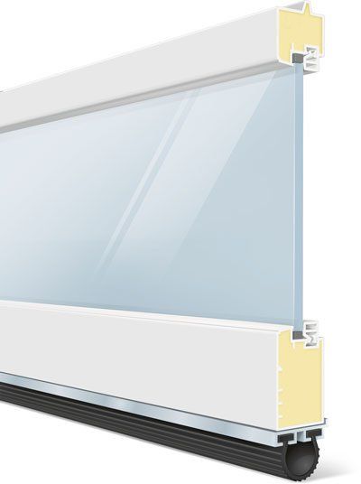 Model AXU made of 2-1/8″ durable commercial grade aluminum with polyurethane insulation with an R-value of 3.8 (with clear insulated glass).