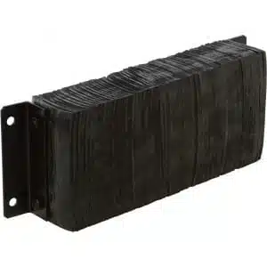 - Laminated Bumpers are constructed of recycled truck tire pads compressed between steel angles and secured with 3/4″ steel tie rods.