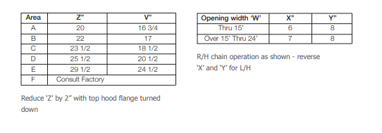 gage galvanized steel or 22 gage stainless steel. Also optional on fire doors to 15’ wide. Standard on counter fire doors and counter doors.